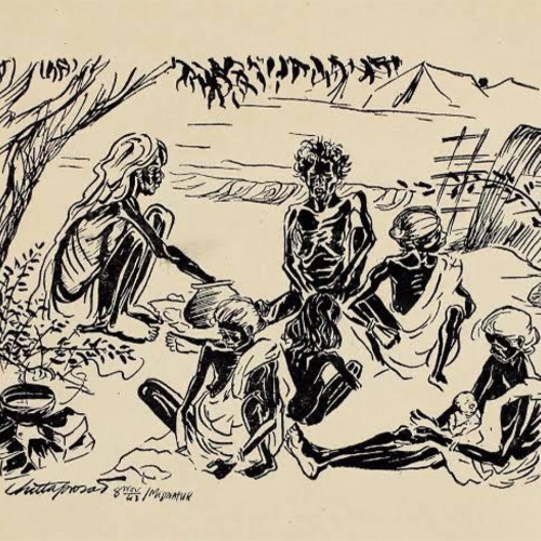 ১৯৪৩, ব্রিটেনের কেম্ব্রিজ বিশ্ববিদ্যালয় মজলিস থেকে বের হয় একটি পুস্তিকা। ‘দ্য ম্যান মেড ফেমিন’। লেখক জ্যোতি বোস। বসু নয়। জ্যোতি বসু তখন লিখতেন এই ছদ্মনামে। দিল্লির সাংকৃত্যায়ন-কোসাম্বি পাঠচক্র এটি পুনঃপ্রকাশ করে ২০২২ সালের মে মাসে। অধ্যাপক উৎসা পট্টনায়েক সেই সংস্করণের একটি ভূমিকা লিখে দেন। মার্কসবাদী পথে তারই ভাষান্তর। বাংলার দুর্ভিক্ষ সম্পর্কিত জ্যোতি বসুর ছোট্ট পুস্তিকাটি সাধারণভাবে রক্ষণশীল ইংরেজি সংবাদমাধ্যমের তথ্যের উপর নির্ভরশীল হলেও অত্যন্ত গুরুত্বপূর্ণ এই কারণে যে খাদ্যশস্যের মজুতদারিকে এর উৎস বলে অভিহিত করার ধারণাকে প্রত্যাখ্যান করে একে সঠিকভাবেই ‘মানুষের তৈরি’ দুর্ভিক্ষ নামে চিহ্নিত করা হয়েছে এখানে। বাংলায় যখন দুর্ভিক্ষের আগুন জ্বলছে, তখন বামপন্থী রাজনীতির সাথে যুক্ত বহু বিশিষ্ট মানুষ ত্রাণের কাজে যুক্ত হয়েছিলেন এবং সাংবাদিকেরা দুর্ভিক্ষপীড়িত অঞ্চল ঘুরে ঘুরে অর্জন করা অভিজ্ঞতাকে তুলে ধরেছেন তাদের প্রতিবেদনে। বিশিষ্ট লেখকদের মধ্যে অন্যতম ভবানী সেন তাঁর রুরাল বেঙ্গল ইন রুইনস বইয়ে এর অনুপুঙ্খ বিবরণ তুলে ধরেছেন। এবং টি জে নারায়ণন দ্য হিন্দু-র পাতায় তখন লিখে গিয়েছেন অনুসন্ধানী প্রতিবেদন। ইংল্যান্ডে প্রগতিশীল সাংবাদিক হেনরি ব্রেইলসফোর্ড ছিলেন ব্রিটিশ সরকারের দুর্ভিক্ষপর্বের নীতির কঠোর সমালোচক। অন্যদিকে ভারত থেকে আসা প্রতিবেদনগুলির উপর নির্ভর করে রজনী পাম দত্ত দ্রব্যমূল্যের ত্বরিত বৃদ্ধির উপর বিশেষ নজর দিয়ে দুর্ভিক্ষের গতিপ্রকৃতি অনুসরণ করেছেন। ইতিহাসের ঘটনাবলীর মধ্যে যারা থাকেন তাঁরা তাঁদের স্বচক্ষে দেখা অভিজ্ঞতার যথাযথ বিবরণ দিতে সক্ষম হলেও এর সম্পূর্ণ অভিঘাত কিংবা এর প্রকৃত কারণ সবসময় চিহ্নিত করতে সমর্থ হন না। এগুলি পরবর্তী সময়কালের নিবিড় গবেষণার বিষয়। খুব হিসেবী অনুমানেও ধারণা করা হয় ৩০ লক্ষ মানুষ ১৯৪৩-৪৪ কালপর্বের দুর্ভিক্ষে ক্ষুধার শিকার হয়ে মৃত্যুমুখে পতিত হয়েছিলেন, যদিও অন্য গবেষকরা মনে করেন এই সংখ্যা ৩৫ লক্ষের কাছাকাছি। এর কারণ হিসেবে গবেষকরা প্রায়ই পোস্ট হক এরগো প্রপটার হক অর্থাৎ ‘ইহার পর উহা, অতএব ইহাই হেতু’ জাতীয় অতিসরলীকরণের প্রচলিত ভ্রান্তির খপ্পরে পড়ে অঙ্গুলির নির্দেশ করেন এমন কিছু বিষয়ের দিকে যার সাথে প্রকৃত ঘটনার কোনো যোগই ছিল না। উত্তর গোলার্ধের বিশ্ববিদ্যালয়গুলির কিছু বিভ্রান্ত পণ্ডিতদেরা এখনও মনে করেন, সেই সময়ে দুর্ভিক্ষ হওয়ার কারণ আগের বছর ঘূর্ণিঝড়ের ফলে খেতের ফসল ধ্বংস হয়ে যাওয়া। দুর্ভিক্ষের ব্যাপকতা তাদেরকে ভাবিত করেনি। কিংবা এই সত্যটিও উপলব্ধি করেনি যে প্রতি বছরই বাংলা ও উড়িষ্যার তটবর্তী অঞ্চলগুলি বিধ্বংসী ঘূর্ণিঝড়ের শিকার হ